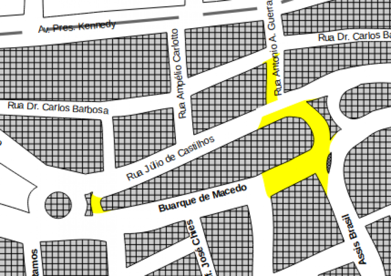 - Fechamento do estacionamento na Rua Buarque de Macedo no trecho compreendido entre as ruas Rio Branco e Assis Brasil;